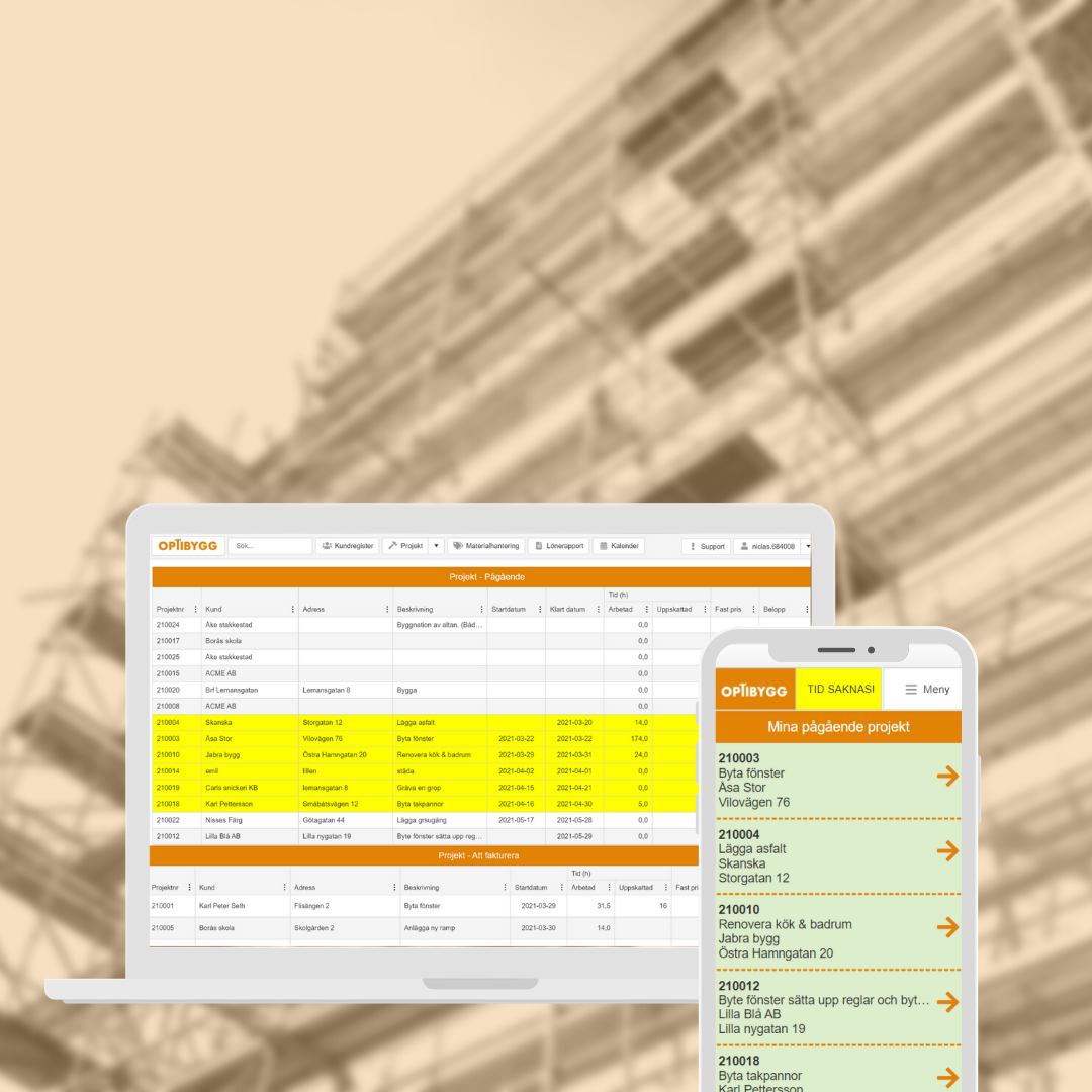 OPTIBYGG – HANTVERKARENS DIGITALA VERKTYG Under en lång tid har vi arbetat med att ta fram ett nytt system för projekthantering för hantverkarbranschen. Optibygg